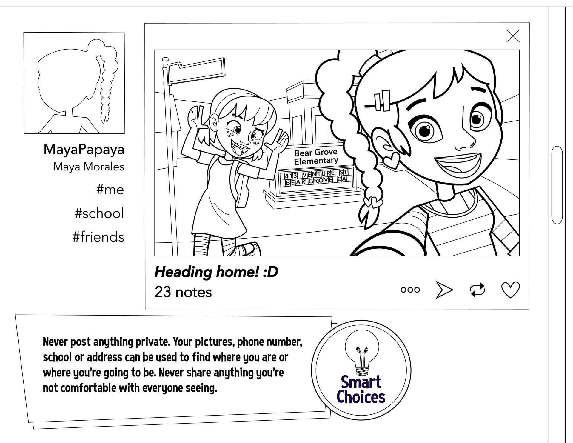 Hiya, I’m Maya! If you want to get to know the real me, just take my digits and send me a text! I don’t go anywhere without my phone, and I am always snapping pics to share! I hang out with my friends almost every day after school, and we love to watch TV and movies together - I love Super Hero Girls! Girl power! I like school a lot, too, but my favorite part is getting to see my friends, especially my BFF Darius!